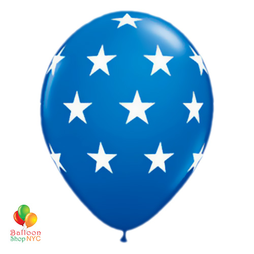Dark Blue Large White Stars Latex Party Balloon 12 inch Inflated will be a great addition to any Patriotic Party decoration. Mix these balloons with Latex Patriotic balloon Bouquets and Mylar American colors theme balloons.