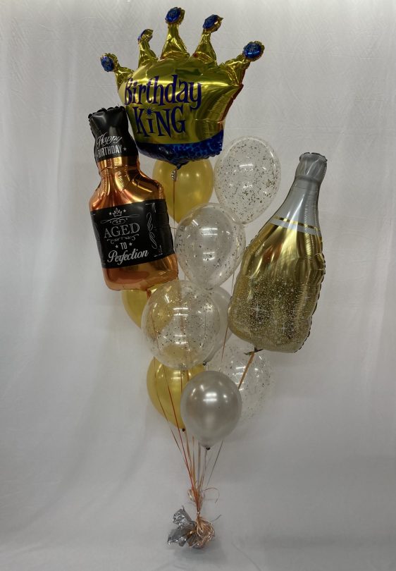 3 – 12″ Gold Latex with hi-float 2 – 12″ Silver Latex with hi-float