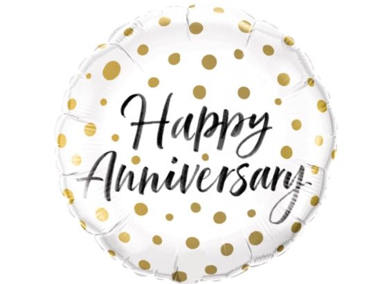 Happy Anniversary Gold Confetti Mylar Balloon 18 Inch Inflated