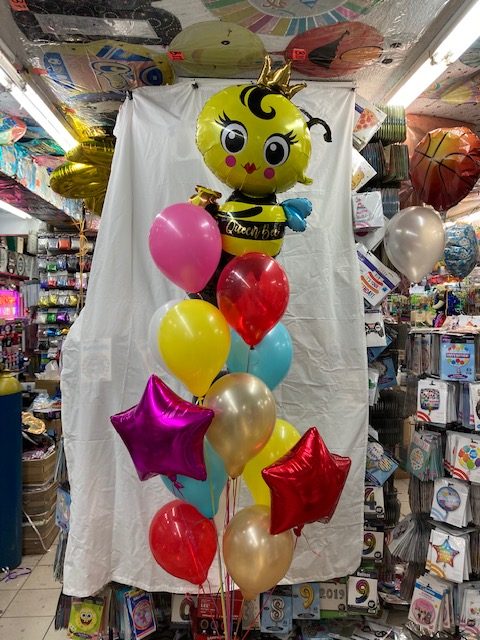 - 1 – Jumbo Bee Mylar Balloons coordinated set with shiny reflective surface.