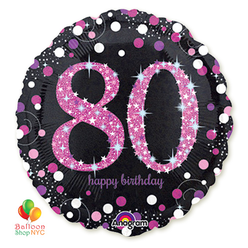 Bright & Shiny Pink Celebration 80 Holographic 18 Inch Mylar Balloon Inflated – perfect for Milestone Birthday gift and Party decoration. Combine with our foil Solid color shapes and Latex balloons from Pink collection.